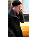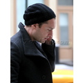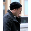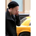 Jude Law talks animatedly on a cell phone in the streets of New York.
