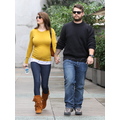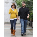 Jack Osbourne and Lisa Stelly hold hands as they walk in the rain.