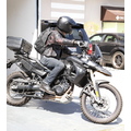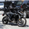 Justin Theroux was spotted on his Mad Max Styled BMW motorcycle.