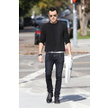 Justin Theroux was wearing a very short crewneck sweater in Beverly Hills on Monday.