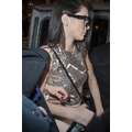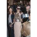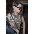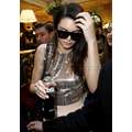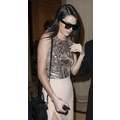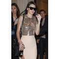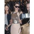 Kendall Jenner dons peach ensemble after Balmain show during Paris Fashion Week on Thursday.