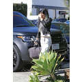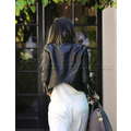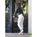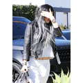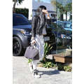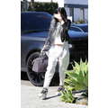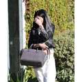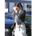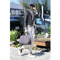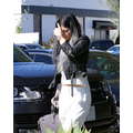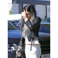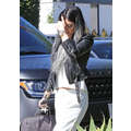 Kylie Jenner wears leather and super cool kicks while arriving at the salon in Beverly Hills on Monday.