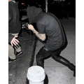 Justin Bieber pulled his usual duck and cover while exiting Bowery Meat Company in New York City on Saturday.