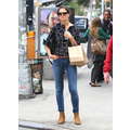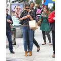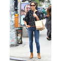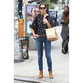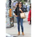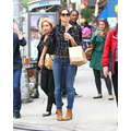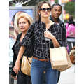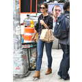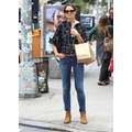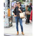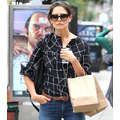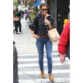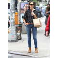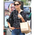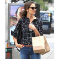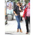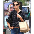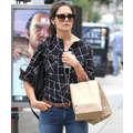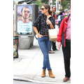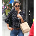 Katie Holmes wore jeans, booties and a plaid top in New York City on Friday.