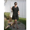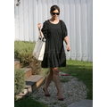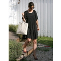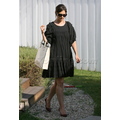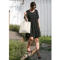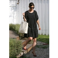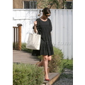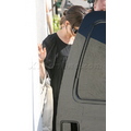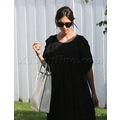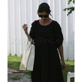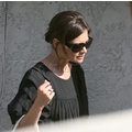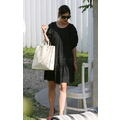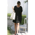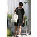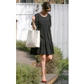 Though a basic black dress can be pretty boring, Katie spiced things up with burgundy pumps and an oversize off white purse...we likey!