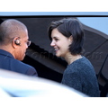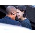 What could be causing Katie to look so happy?