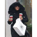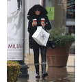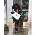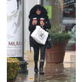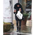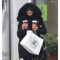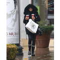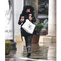 Kris Jenner was spotted at the Calabasas shopping center with her hands full. She wore her hood of to fight Southern California drizzle.