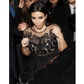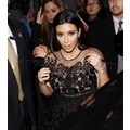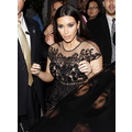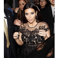 Kim Kardashian rocks black feathers to Top Shop opening.