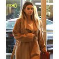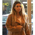 Kim Kardashian was spotted in white slacks and a creme overcoat, at the Topanga Mall.