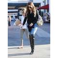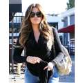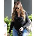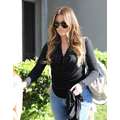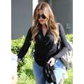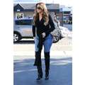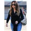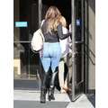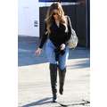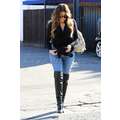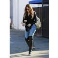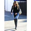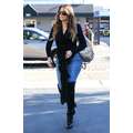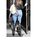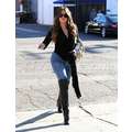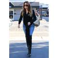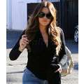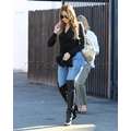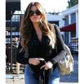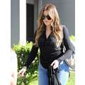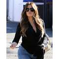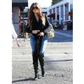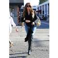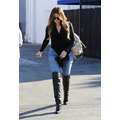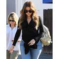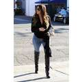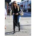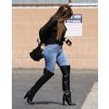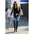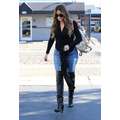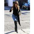 Khloe Kardashian was spotted in leather boots and a black top with pale blue jeans.