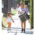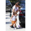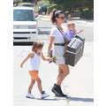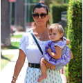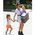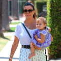 Kourtney Kardashian had her hands full when we snapped her heading to a birthday party in Los Feliz with Mason and baby Penelope.