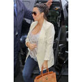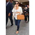 Kim Kardashian continues to hid her baby bump with loose-fitting, non-maternity clothes!