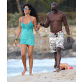 Kimora Lee and hubby Dijmon Hounsou enjoy a romantic stroll on the beach in St. Barths.