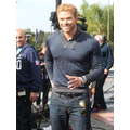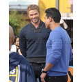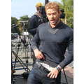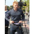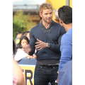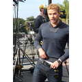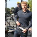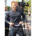 Kellan Lutz shows off his underwear and his hot bod on the set of Extra.