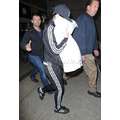 Katy Perry covered her face with a pillow when she arrived at Los Angeles International Airport on Friday.