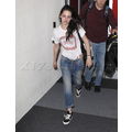 The Snow White and the Huntsman star lands in LA during non-stop promotions for her new film.