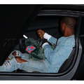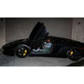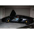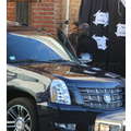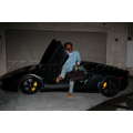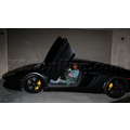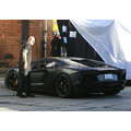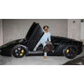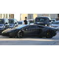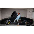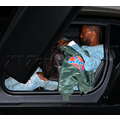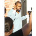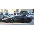 Kanye West rolled up to an event in Hollywood on Friday in his black Lambo.