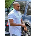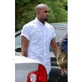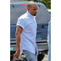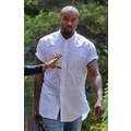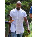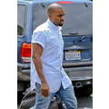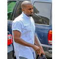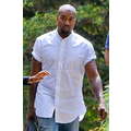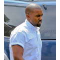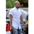 Kanye West rolled up the short sleeves on his untucked, collarless button-up, clearly ready to get down to business.