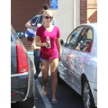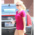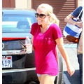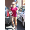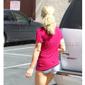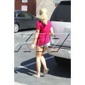 Kendra Wilkinson prances around in a pink shirt and short shorts.