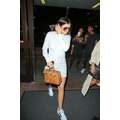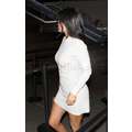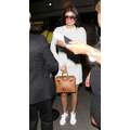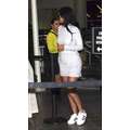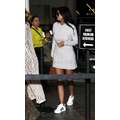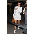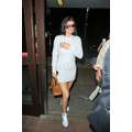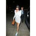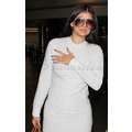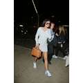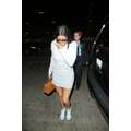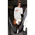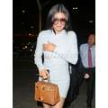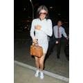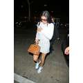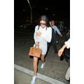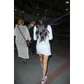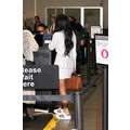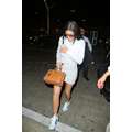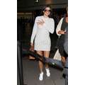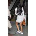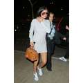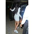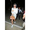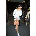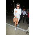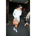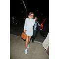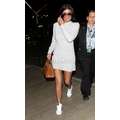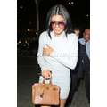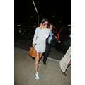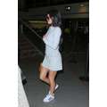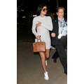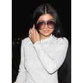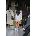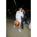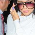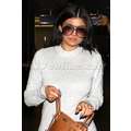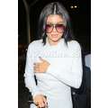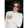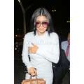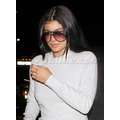Kylie Jenner showed off her puffy lips and bright purple nails at the airport on Saturday before hopping on a plane to Montreal.