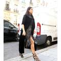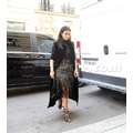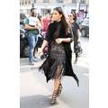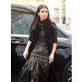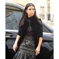 Kim Kardashian showed off her curves in a fringed skirt and see-through top on Monday in Paris.