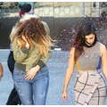 Sisters Kourtney and Khloe Kardashian got blasted with colored confetti while out and about in West Hollywood by Richie the barber.