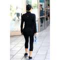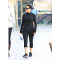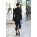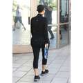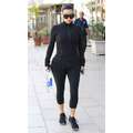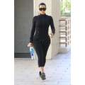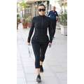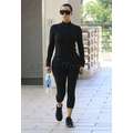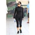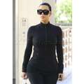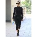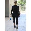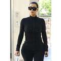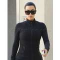 Kim Kardashian pulls back her newly brown locks during a trip to the gym on Thursday.