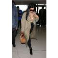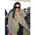 Kim Kardashian shows off her boobs when she jets out of LAX on Monday.