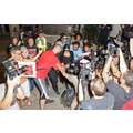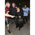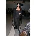 Wearing a skintight black catsuit, Kim Kardashian caused a serious hubbub when she arrived at LAX from Paris on Wednesday.