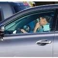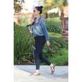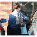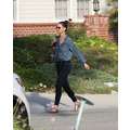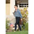 Katie Holmes in jeans taking Suri to a birthday party in Calabasas on Saturday.