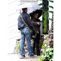 And she's gotta protect her itty bitty pooch from the precipitation too!
