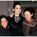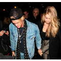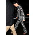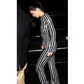 Kendall Jenner at Alexander Wangs NYCFW wearing stripes with friend Gigi Hadad and Cody Simpson.