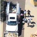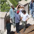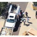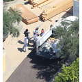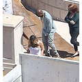 A blonder Kim Kardashian and Kanye West oversee the construction of their new home.