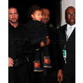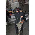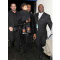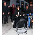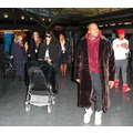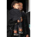 Still dressed in their Grammy gear, Kim Kardashian and Kanye West arrive to LAX with daughter Nori on Sunday night.