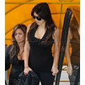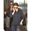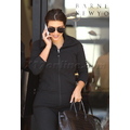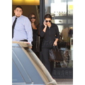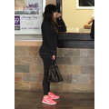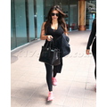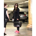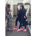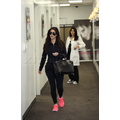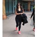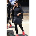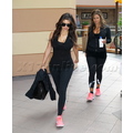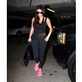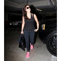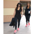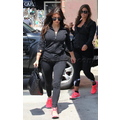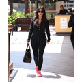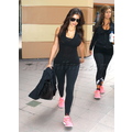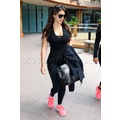 Kim Kardashian pairs slimming black with bright pink sneaks for her daily workout.