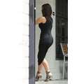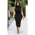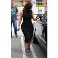 Kim Kardashian showed off her round rump on Thursday when she wore a strategically designed ruched dress while out and about in Calabasas, Calif on Thursday.
