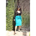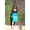 Kim Kardashian Rocks A Tight Turquoise Skirt