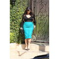 Kim Kardashian looks striking in a turquoise skirt sunday in Los Angeles.