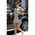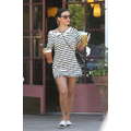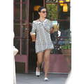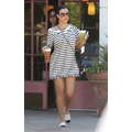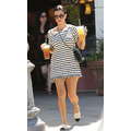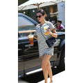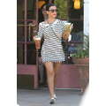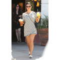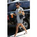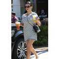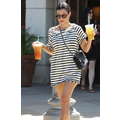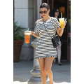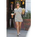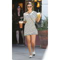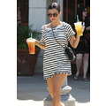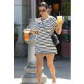 Wearing a striped dress, Kourtney Kardashian stops by Starbucks for a coffee fix in Beverly Hills on Aug. 7, 2013.