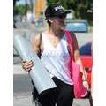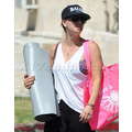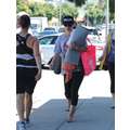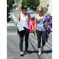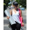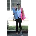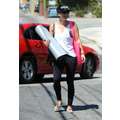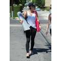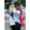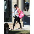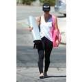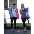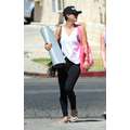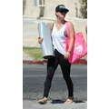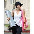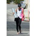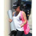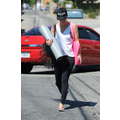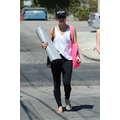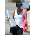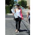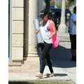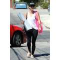 Kaley Cuoco was spotted in a Ballin' Paris cap, with black tights and a white tee, leaving yoga class with friends in Beverly Hills.