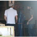 Peek a boo, we see you! Leonardo DiCaprio kept a low profile while shopping for jeans at Diesel in Malibu.