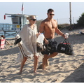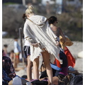 Lindsay Lohan brings her mom along to the beach for some sun and surf.