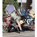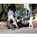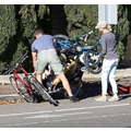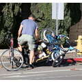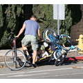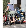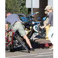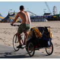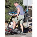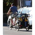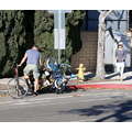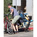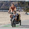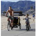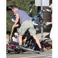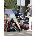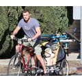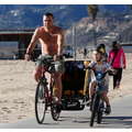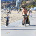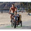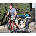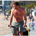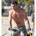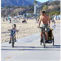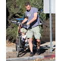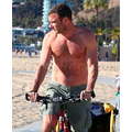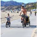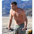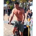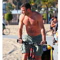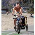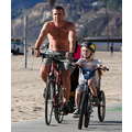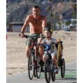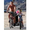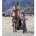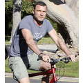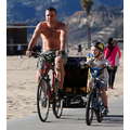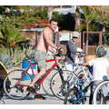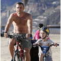Liev Schreiber takes off his shirt while biking in Santa Monica with wife Naomi Watts and the kids.