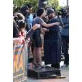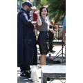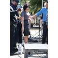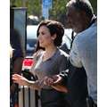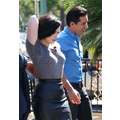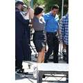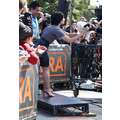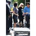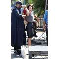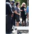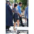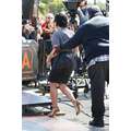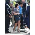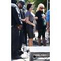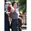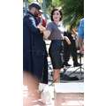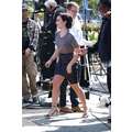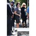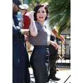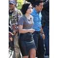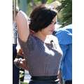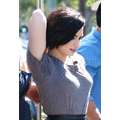 Demi Lovato arrives at the Extra set with embarrassing arm pit stains and a hole in her shirt.