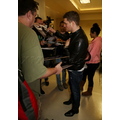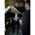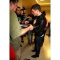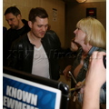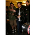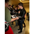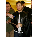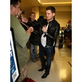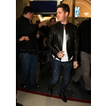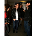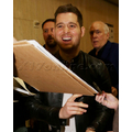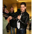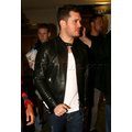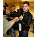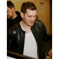 Michael Buble was spotted at LAX in a black leather jacket. The crooner was quickly surrounded by autograph seekers and fans hoping to get a photo with him.