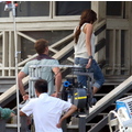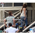 Miss Miley Cyrus and her co-star Liam Hemsworth were snapped on the set of The Last Song in Georgia yesterday.