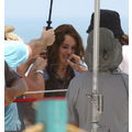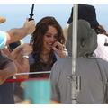 Miley smiles and waves...and then ditches the good girl routine for a belly baring black outfit. Hey, she looks great, but we keep forgetting how old she really is!