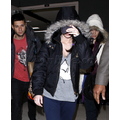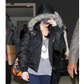 Megan Fox hides her face under her hood as she arrives at LAX.