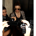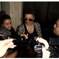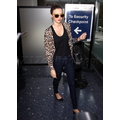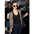 Supermodel Miranda Kerr gets mobbed at LAX as she signs autographs and smiles for pictures.