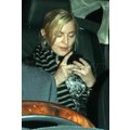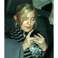 The 52-year-old pop superstar was spotted texting in her car after arriving at London's Heathrow airport.